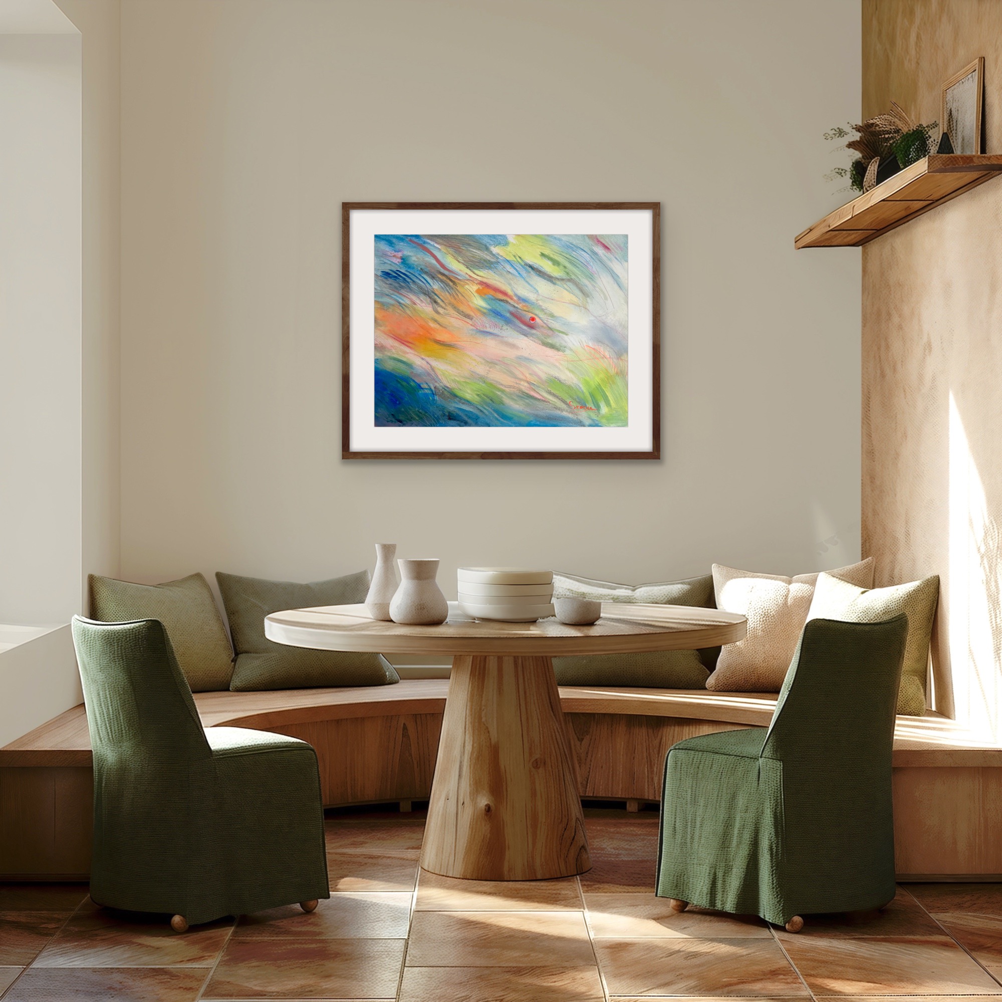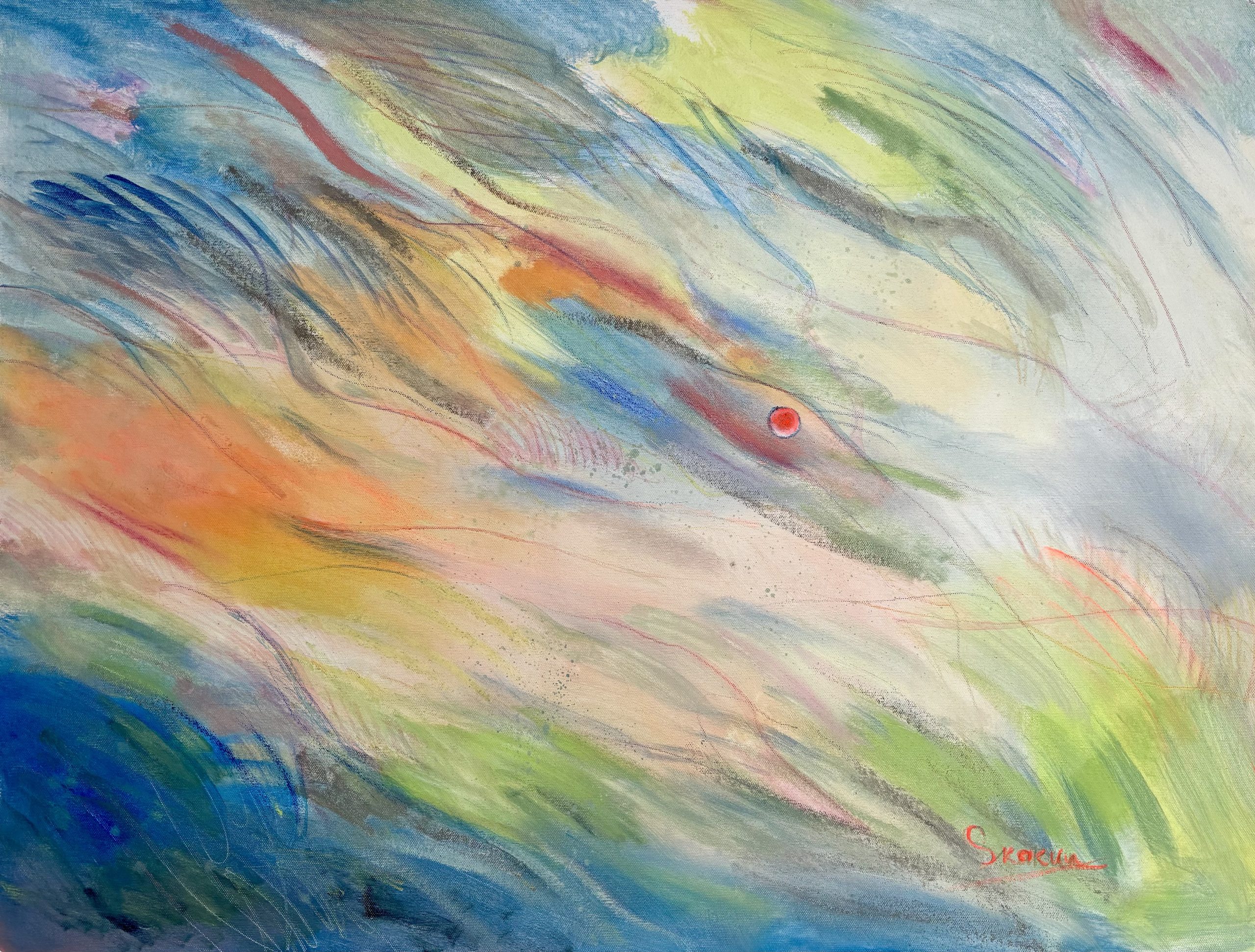 This painting was created in Goa. I was simply watching the waves of daylight — how it plays, how it shimmers, how it changes. And at some point, I realized that this is exactly what I wanted to capture — not a subject, not an object, but this very feeling. A state of lightness, carefree joy, and relaxation that I was living through at the time, and that now lives on in this work.